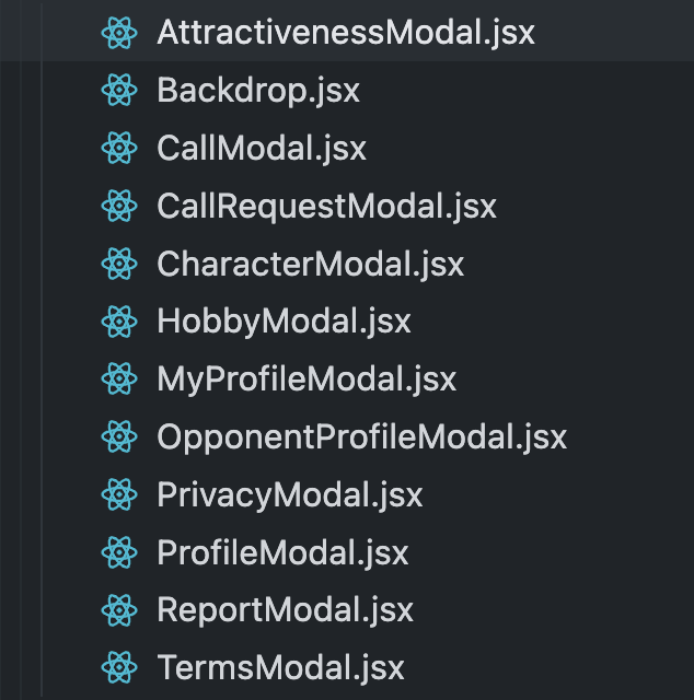 먼저 기존에 사용하던 <Modal />, <BlankModal /> 컴포넌트를 제거하고, 11가지의 모달을 각각 개별 컴포넌트화했습니다. 기존에는 모달의 내용이나 로직을 수정하기 위해 해당 페이지를 방문해야 했다면, 이제는 그 역할을 분리해 해당하는 모달을 찾아서 수정할 수 있게 되었습니다.