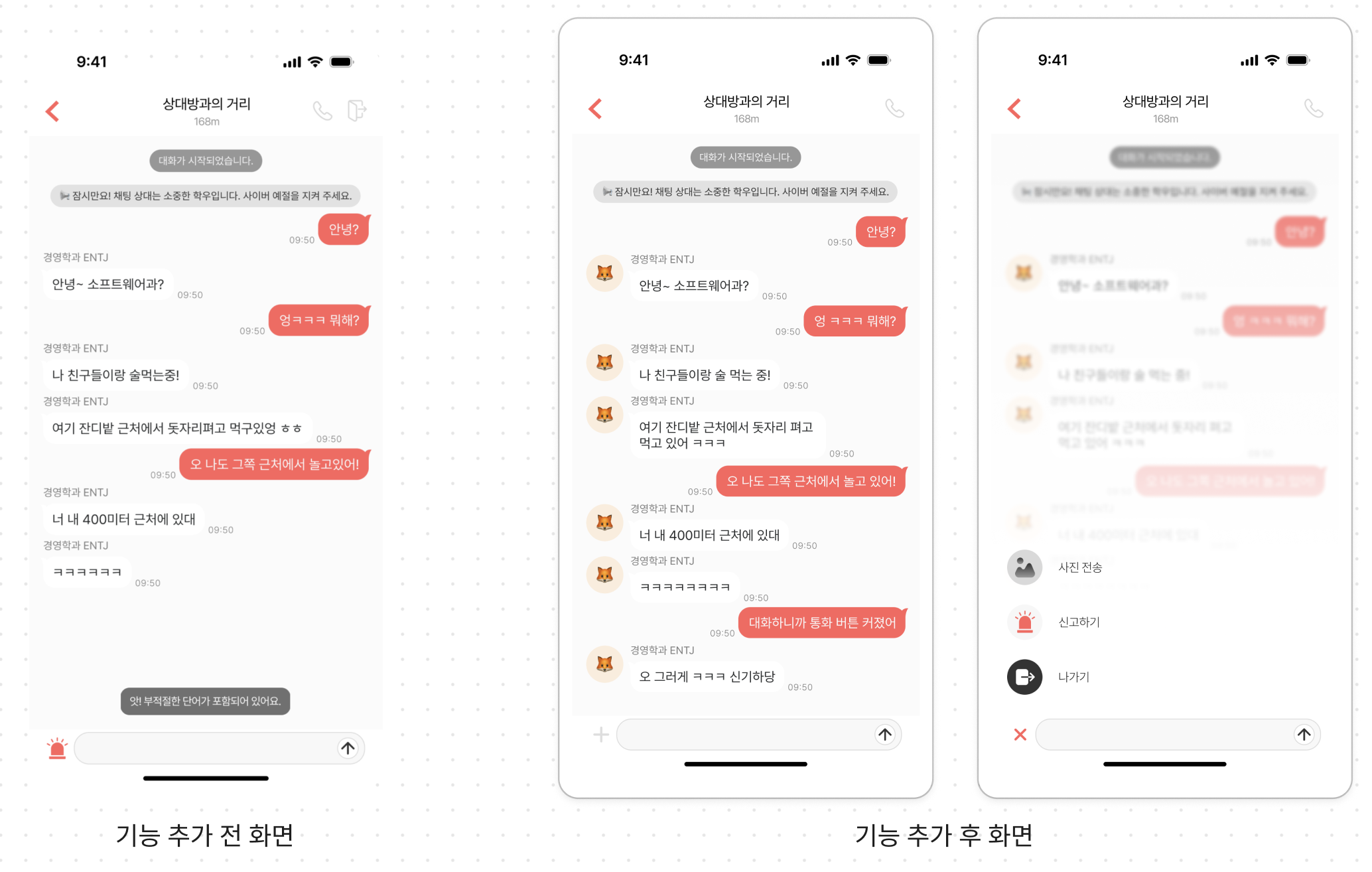 기존에는 채팅페이지에서 다음과 같은 기능들을 제공했었습니다.